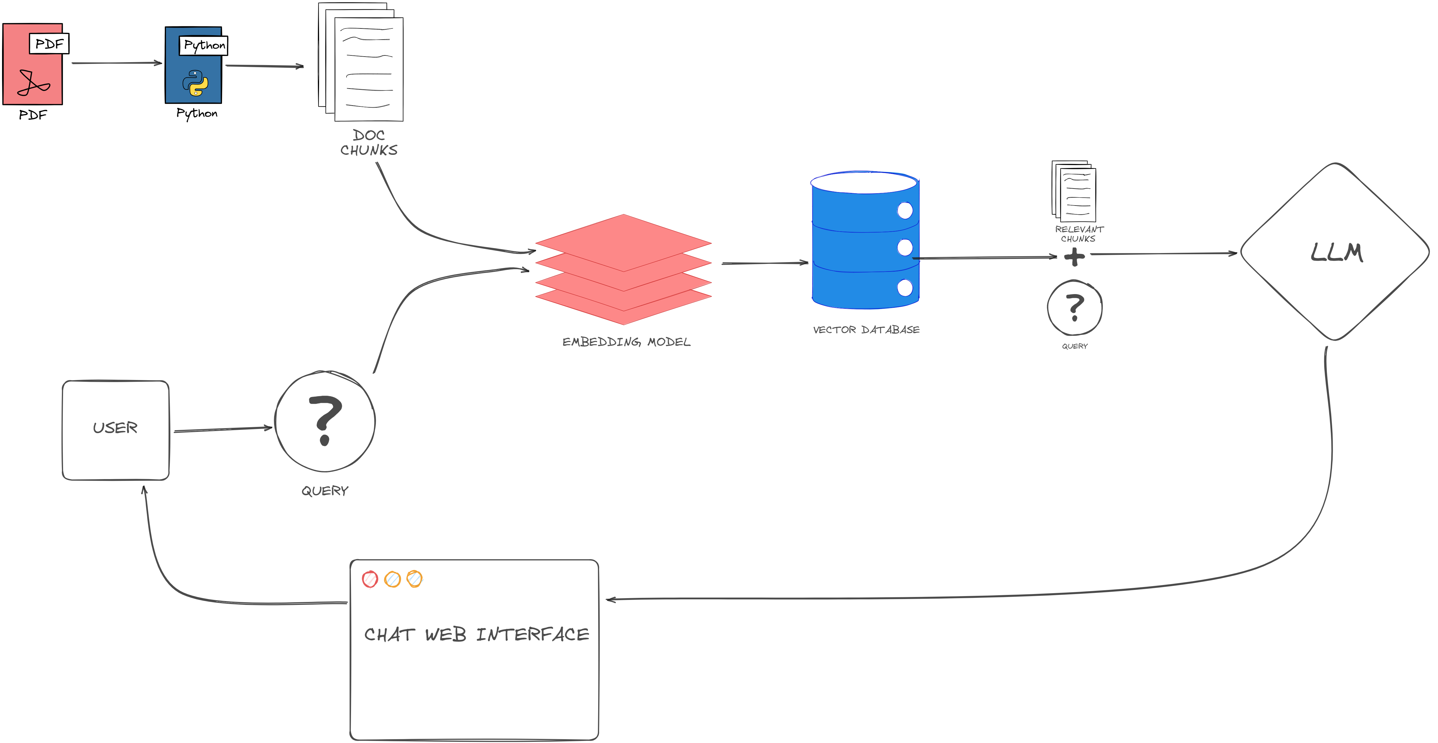 This first step is gathering relevant data sources for the relevant target use case, and this can include any type of document or database, in the diagram, i just used a PDF to illustrate. Additionally, software tools like Langchain and Llama Index are very helpful in this process. Langchain facilitates the extraction of valuable insights from unstructured text data, enabling efficient analysis of documents, articles, and other textual sources. On the other hand, Llama Index provides comprehensive indexing and search capabilities, allowing users to quickly locate and access relevant information across multiple databases and repositories. By leveraging these advanced technologies, the company can streamline the data gathering process, ensuring that they have access to the necessary information to drive informed decision-making and achieve their objectives.